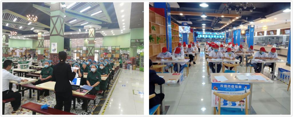 学院紧抓食品安全的关键环节,严格按规范操作。严把源材料关,米面油肉等大宗物品学院统一采购,蔬菜调料等各经营单位自行采购,所有物品坚持索证索票制,并专人验收材料,保证食材安全;严把从业人员关,坚持持证上岗、健康上岗,每天晨检,检查从业人员的健康、着装、卫生状况;严把操作关,食材严格按要求、流程制作;严把环境卫生关,每天对用餐环境进行消杀、每晚夜巡大检查、每周3次刀墩消杀;严把餐具卫生关,落实“五消制”,餐具由专人负责消杀,经过去残渣、清洗、过清水、高温消毒、紫外线或消毒柜消杀等环节,做到环环相扣、无缝衔接。学院用实际行动落实制度要求,切实提高师生用餐满意度。