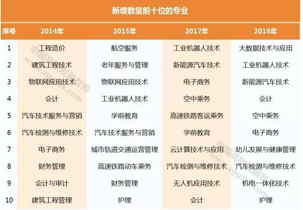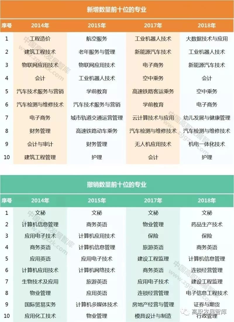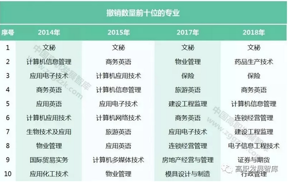 附:全国高职院校近四年新增和撤销专业数量排行