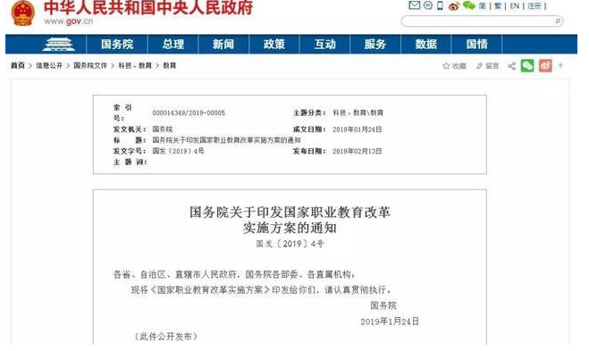 日前,国务院印发《国家职业教育改革实施方案》,对高中生(或具有高中同等学力)将要接受的职业教育发展提出具体指标: