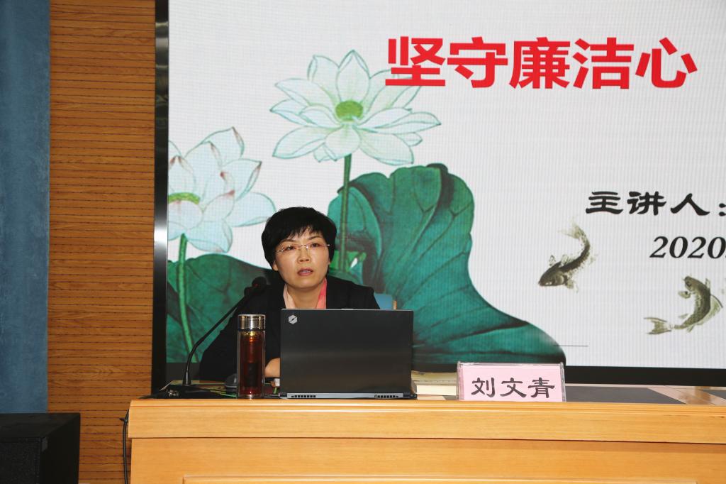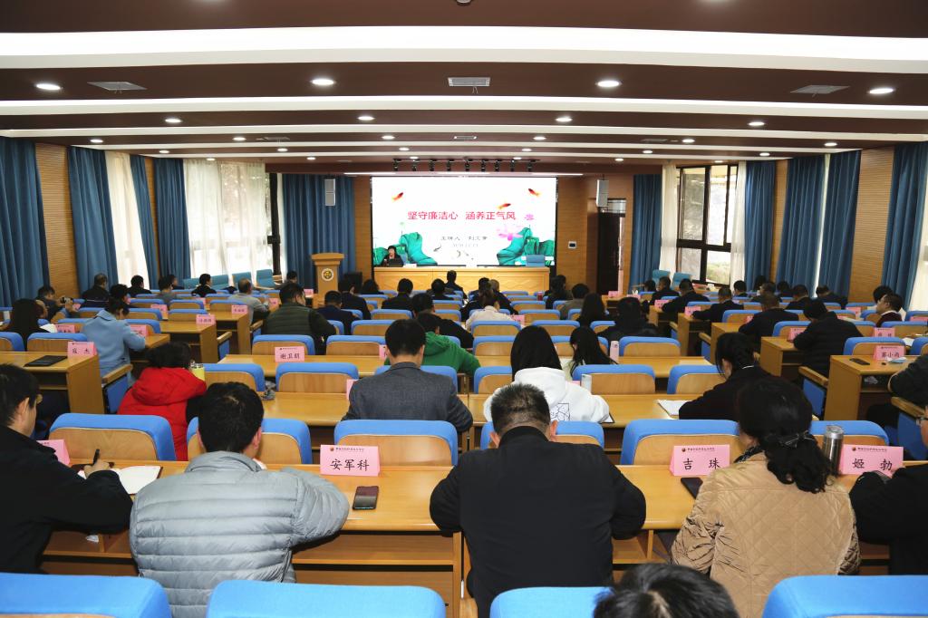 11月13日下午,党委副书记兼纪委书记刘文青以《坚守廉洁心 涵养正气风》为题,在继续教育培训厅为处科级干部培训班作专题报告,全体处科级干部100余人聆听报告。报告由党委副书记朱华斌主持。