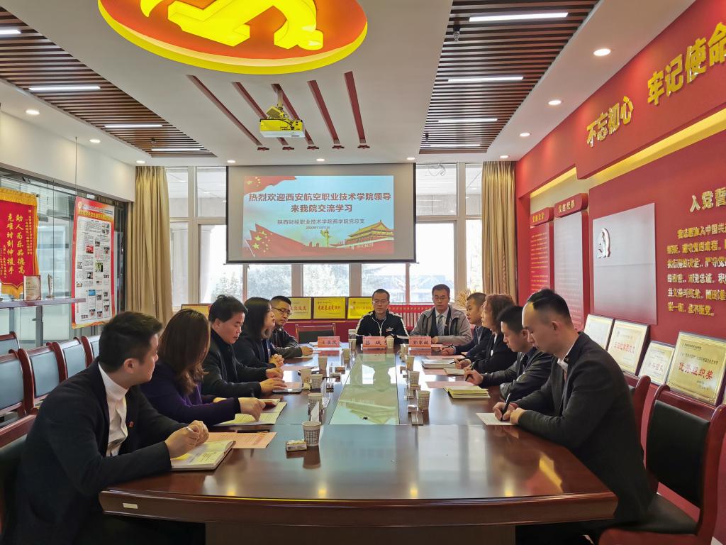 为了加强与兄弟院校之间的交流合作,相互借鉴学习样板支部培育创建的先进经验和方法,11月11日,西安航空职业技术学院汽车工程学院党总支副书记孔庆华等4人来我院商学院进行考察调研。上午,在综合楼二楼省级样板支部活动室,双方召开样板支部培育创建经验交流座谈会,参加此次会议的有西航职院汽车工程学院党总支副书记孔庆华、汽车工程学院学生党支部书记阳益峰、航空维修工程学院学生党支部书记张江波、汽车工程学院辅导员田祁,学院商学院院长董媛、办公室主任窦小雨、学生党支部书记杨阳、团总支书记刘明及商学院辅导员吕斌、王亚凤、郭家赫等共计12人。会议由商学院党总支书记张晓战主持。