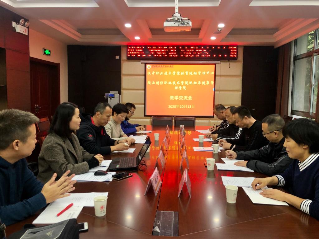李健兵就体育课程引入新项目与信息化手段、教师教育教学科研能力发展、训练竞赛水平提升、校园体育文化建设、学生体质健康监测等重点工作展开深入交流。刘栋听取汇报后,充分肯定了我院体育工作改革力度以及所取得的成绩,并介绍了汉中职院校内体育教学等方面的工作经验。双方都表示通过参观交流,加深了解,有利于互相借鉴,希望今后要进一步深化高职院校间的体育交流合作,在交流中找差距、促发展,互相学习先进经验和做法,拓展理念、打开思路,大力促进双方更好更快地提升体育工作水平,提高体育教育教学质量,不断提高人才培养质量,促进学院体育工作共同发展。